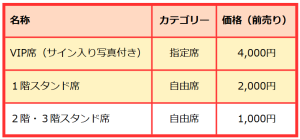 VIP席→1回の購入で2枚まで(上限枚数制限なし)