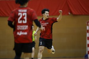後半に入っても、終始BK刈谷が試合を支配します。会場が湧いたのは後半1分41秒。#9杉岡が相手のパスを読んでスティールに成功すると、そのまま独走してゴール。そのわずか数十秒後に再びスティールから速攻を決めるビッグプレーを連発します。