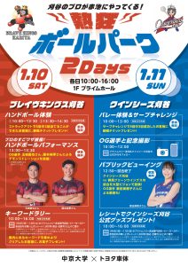 2026年1月10日(土)-11日(日)にプライムツリー赤池にて「熱狂ボールパーク2Days」が開催され、ブレイヴキングス刈谷は1月10日(土)にハンドボールイベントを実施することになりましたので、お知らせします。