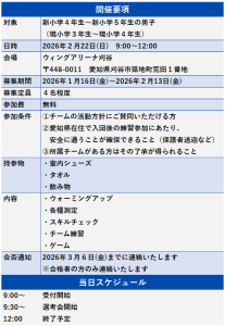 ジュニアチーム「ブレイヴキングス刈谷U12」の第3回メンバー選考会を実施します。