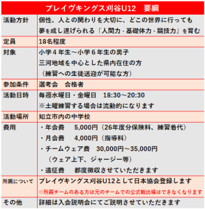 より地域に根ざし青少年育成・地域の活性化に貢献すること、長期的視点にたった一貫指導体制での成長サポートをはかるべく「小学4年生~小学6年生の男子」を対象とした「ブレイヴキングス刈谷U12」を創設しました。25年4月より活動しています。 ▶アカデミーページはこちら
