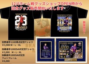 #23LB吉野樹選手と#12GK加藤芳規選手の記念グッズを、次節12/6(土)刈谷市体育館でのホーム戦で販売いたします。いずれも数量限定。試合前のグッズショップOPEN時から販売いたしますので、お早めにお買い求めください!