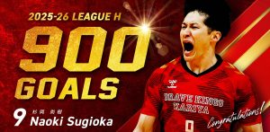 #9日本代表LW杉岡尚樹(31)が、10/10(金)の琉球コラソン戦(刈谷市体育館)にて、リーグ通算900得点を達成しました。史上9人目の快挙となります。ブレイヴキングス刈谷ではRB渡部仁、LB吉野樹に続く3人目です。前節を終えあと1得点に迫っていた杉岡はこの試合後半だけで3得点をマークしました。