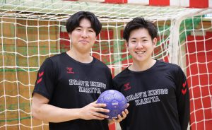 小畠:僕は大学の時に知りました。僕は明治大学で、岡本くんは名城大学なんですが、僕が3年生の時のインカレ(全日本学生ハンドボール選手権大会)で対戦してるんですよ。対戦する前の試合(2回戦の国士舘大学戦)を観戦したんですけど、岡本くんが最後にすごいロングシュートを決めて逆転勝ちして、「あの選手、すごい!」って、その時に初めて知りました。